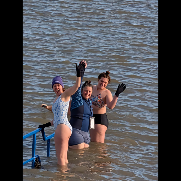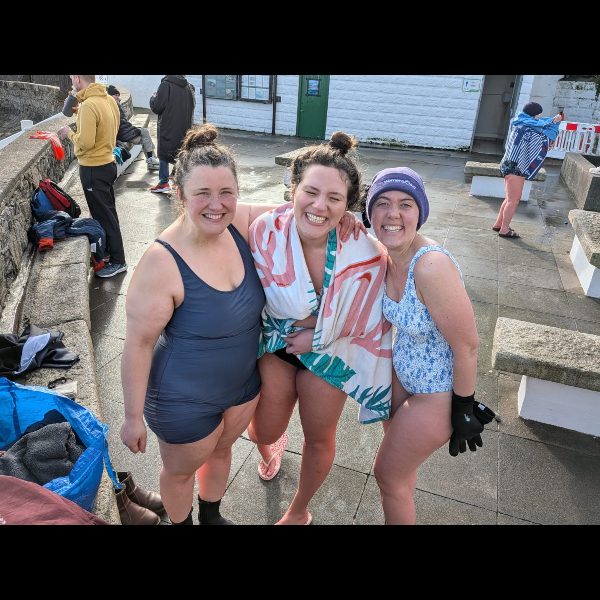 Sunday 8th Feb Orla, Darby and I finally did the swim! a week late & in the small window of sunshine today! was so cold but so worth it!