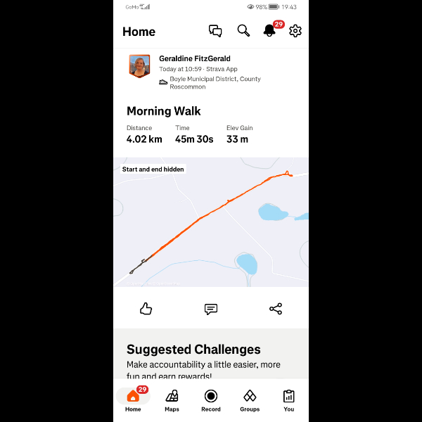 Well done Geraldine. Good luck with the walking.