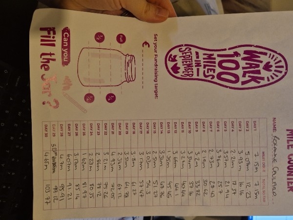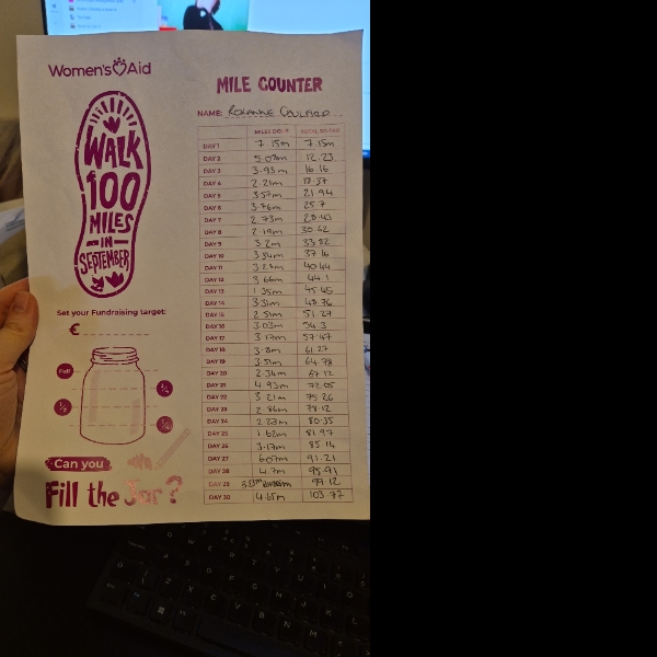 I’m taking part in the Walk 100 Miles in September Challenge to raise much needed funds for Women’s Aid.