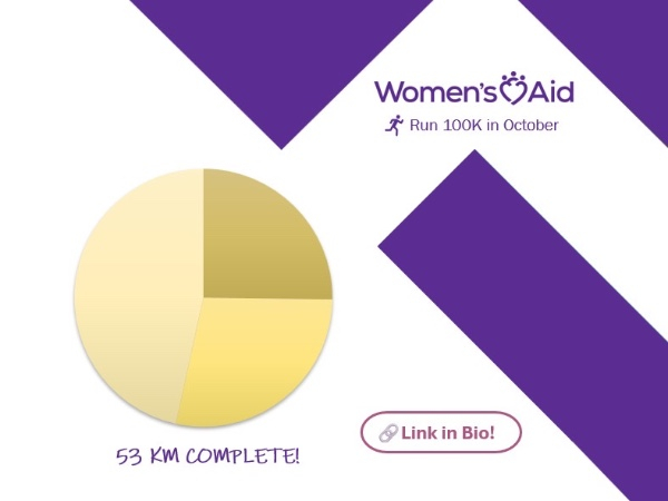 I’m taking part in the Run 100K in October Challenge to raise much needed funds for Women’s Aid.